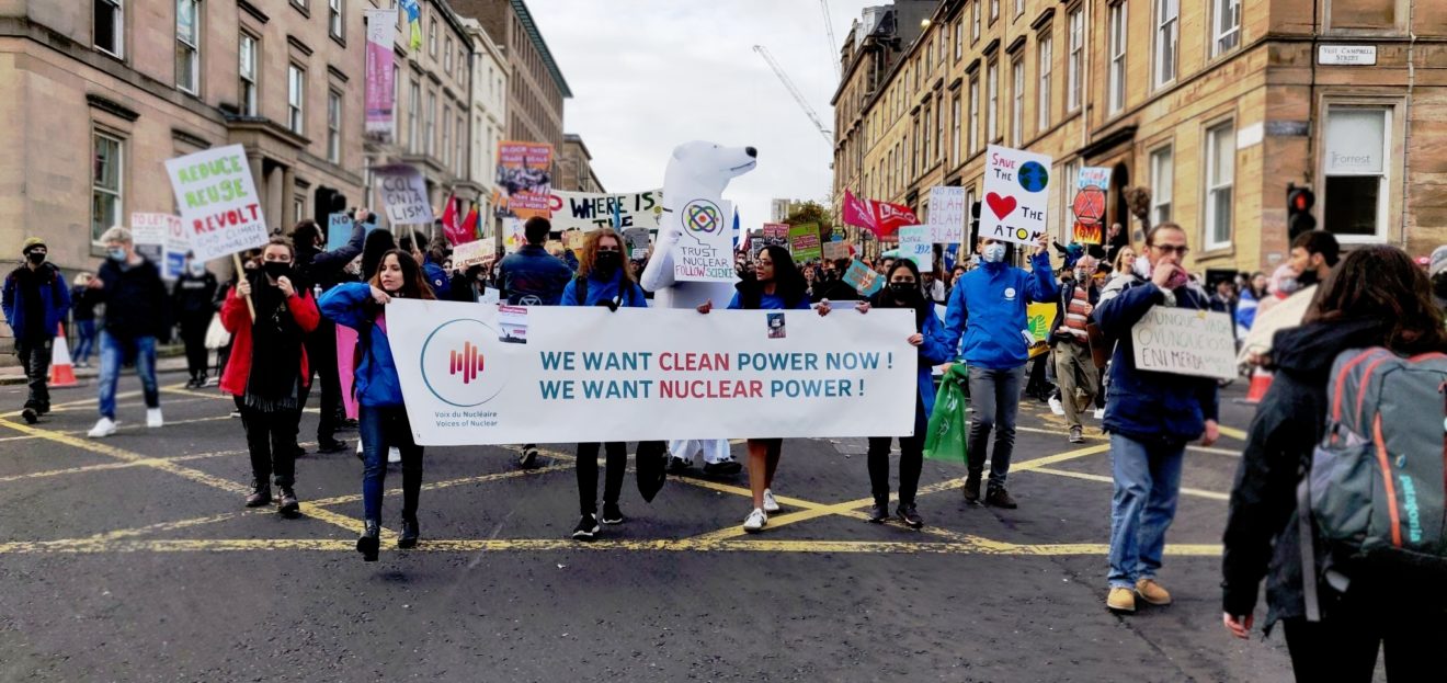 Dans le cadre de la conférence de l’ONU pour le climat, certains d’entre nous se sont rendus à Glasgow afin de rappeler aux décideurs et à l’opinion publique que le nucléaire est une énergie bas-carbone indispensable à une transition énergétique juste, solidaire et efficace. Vous avez peut-être pu suivre sur les réseaux sociaux nos activités, qui seront détaillées dans une autre newsletter à suivre sous peu.