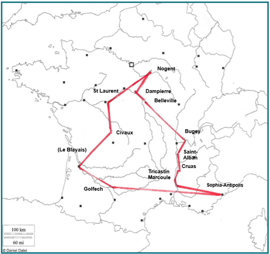 Il en manque bien sûr. Il manque Châlons, Cadarache, Jeumont, Saclay, Paluel, La Défense, Montrouge, Gravelines (la plus grande forcément), Fessenheim, Penly, Wagram, Flamanville, Chooz,… et tous les sous-traitants dont je n’ai vu que quelques antennes autour de Marcoule.