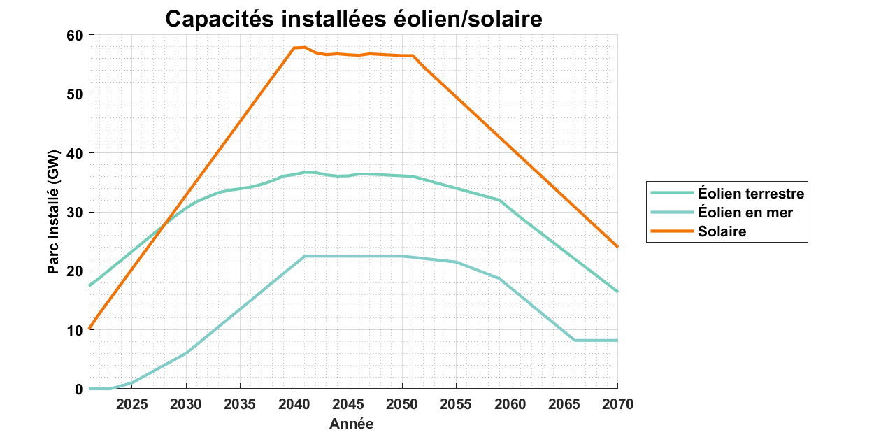 Au-delà de 2050, il sera tout autant possible de conserver ce niveau dans le mix, que d’engager une décroissance des productions éoliennes et solaires au fur et à mesure que les installations arriveront en fin de vie. Cette décision dépendra des conditions économiques d’alors, ainsi que d’un choix démocratique de politique énergétique.