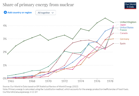 Cette impulsion s’est poursuivie dans les années 1970, avec un ambitieux programme de développement nucléaire comparable au plan Messmer en France. A la fin de la décennie, alors que la population de l’Espagne était d’environ 36 millions d’habitants, plus d’une douzaine de nouveaux réacteurs étaient planifiés et une solide industrie nucléaire était en développement au niveau national, y compris pour la fabrication de combustible nucléaire.
