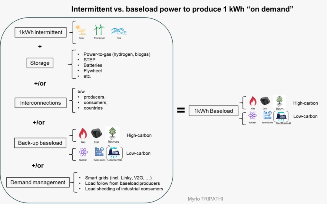 The dispatchable energy sources are mostly fossil fuels. However, hydropower and nuclear energy are also dispatchable though nuclear is less reactive in start-up phase with less load follow and hydro needs replenishment.